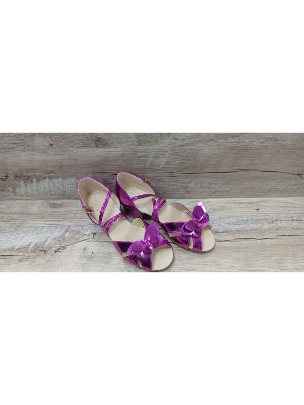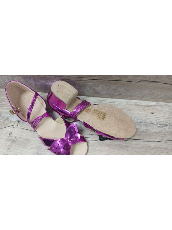 Детские девчачьи танцевальные туфли для спортивных бальных танцев: модель с бабочкой на носочке и возможностью регулировать полноту.