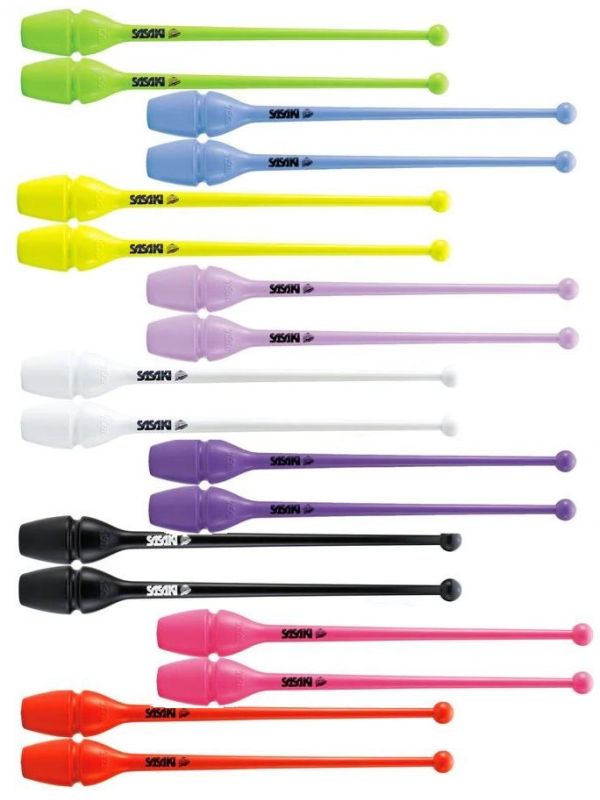 Булавы для художественной гимнастики от японского бренда Sasaki по праву считаются одними из лучших в мире. Модель M-34JKH однотонная, имеет глубокий насыщенный цвет. Конструкция булав предусматривает фиксацию шарика одной булавы в головке другой, имеет длину 40,5 см - подойдет девочке 8-11 лет. Сами булавы выполнены из качественной мягкой резины с ощущением бархатистости. Резиновые булавы SASAKI состоят из стекловолоконной основы, которая придает им прочности и уританового покрытия сверху, которое, как и литая форма, сокращает возможность появления трещин и расколов и содействует динамичным броскам во время выступления. Двойная система фиксации: легкая фиксация - для быстрого движения, сильная фиксация - для динамического движения.
