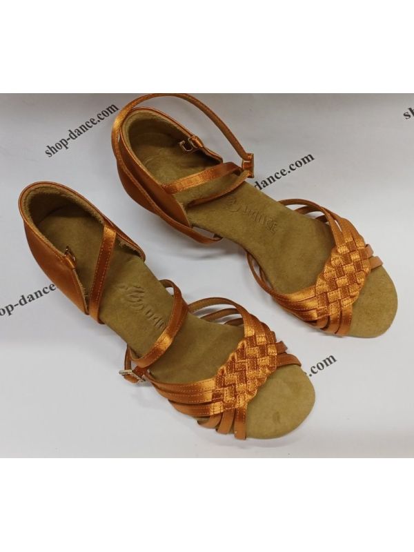 Профессиональные танцевальные туфлі для спортивних бальних танців від виробника BD Dance (Біді Денс) с элегантной атласной конструкцией, сложными плетеными ремешками и надежной застежкой-пряжкой на щиколотке для устойчивости