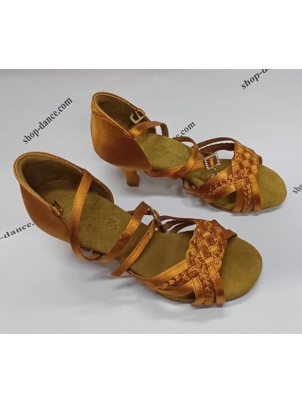 Профессиональные танцевальные туфлі для спортивних бальних танців від виробника BD Dance (Біді Денс) с элегантной атласной конструкцией, сложными плетеными ремешками и надежной застежкой-пряжкой на щиколотке для устойчивости