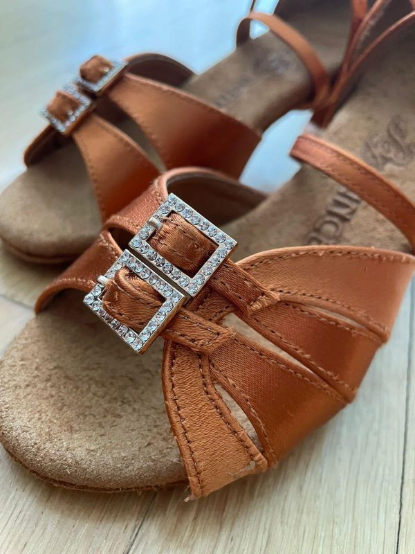 Професійні танцювальні туфлі з регулюванням повноти біля пальчиків для спортивних бальних танців від виробника BD Dance (Біді Денс) з елегантною атласною конструкцією, складними плетеними ремінцями та надійною застібкою-пряжкою на щиколотці для стійкості